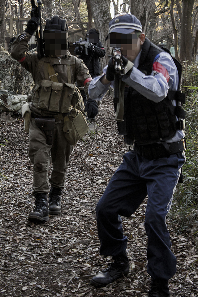 午前中1戦目、2戦目にサバゲしている間に、コス勢が更衣室で真の姿へ。